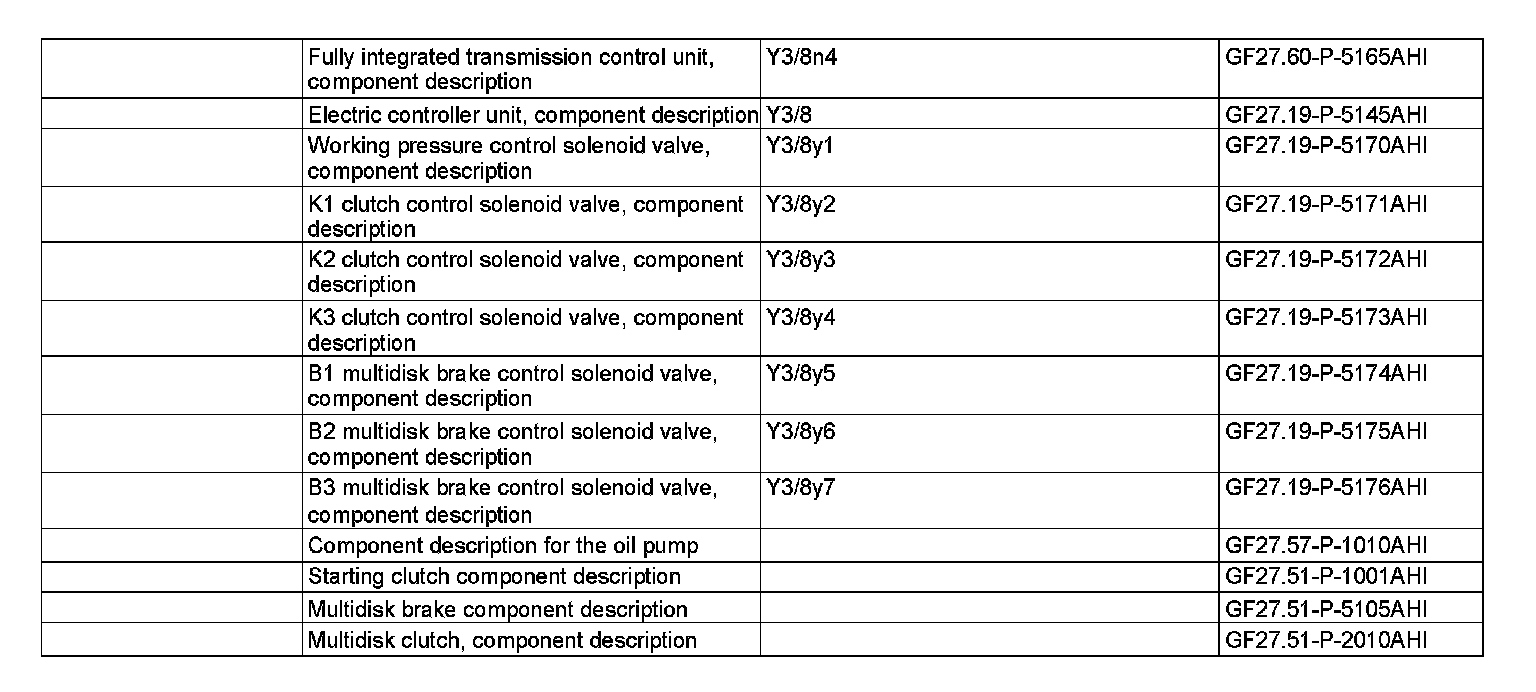The position of the working pressure regulating valve is influenced by the working pressure control solenoid valve (VGS) (Y3/8y1) in a manner which is dependent on load and gear. All other pressures required for the transmission control are derived from the working pressure.