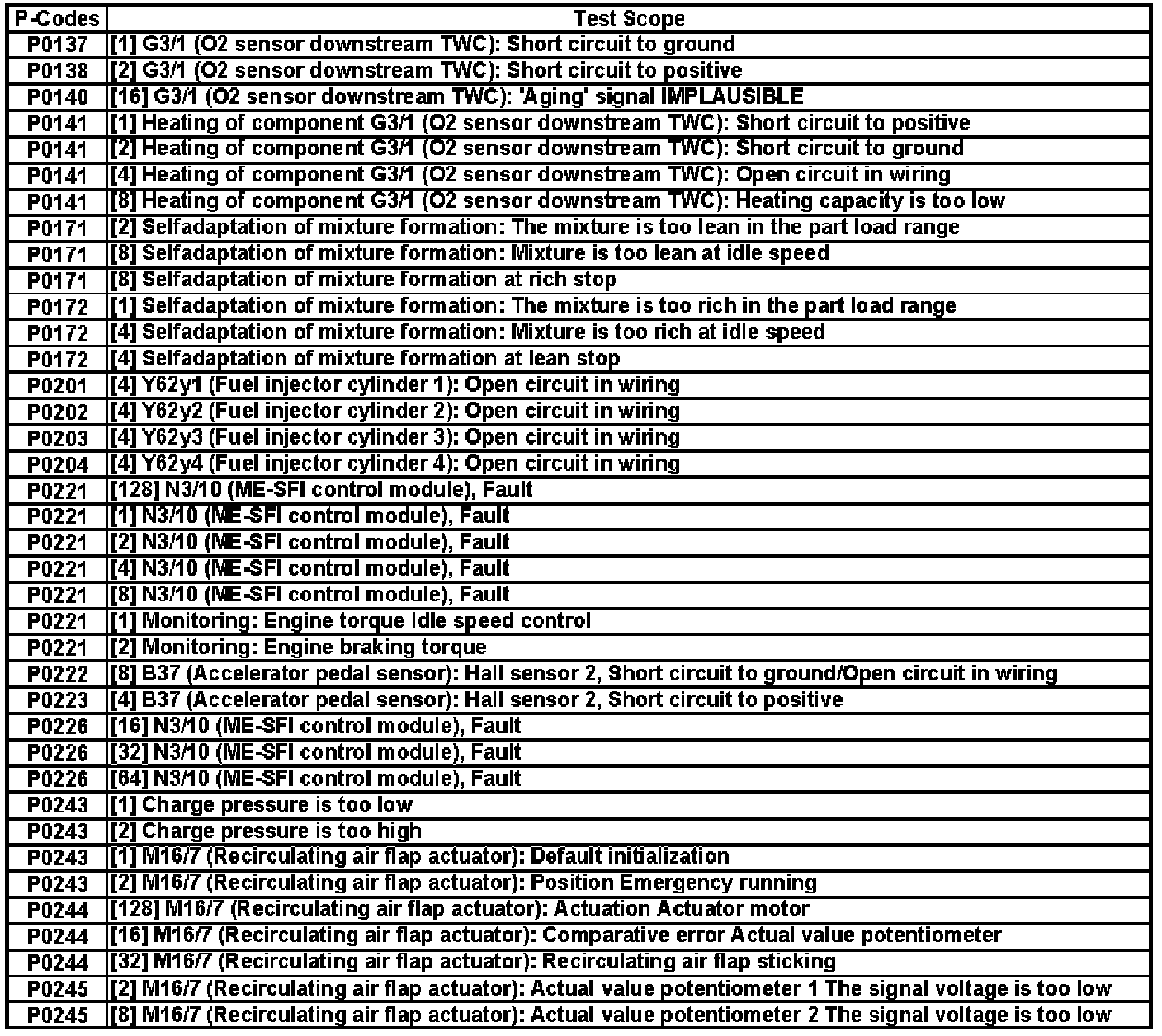 A L L Diagnostic Trouble Codes ( DTC )