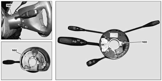 - Plug connection at control unit N80 (Steering column module)