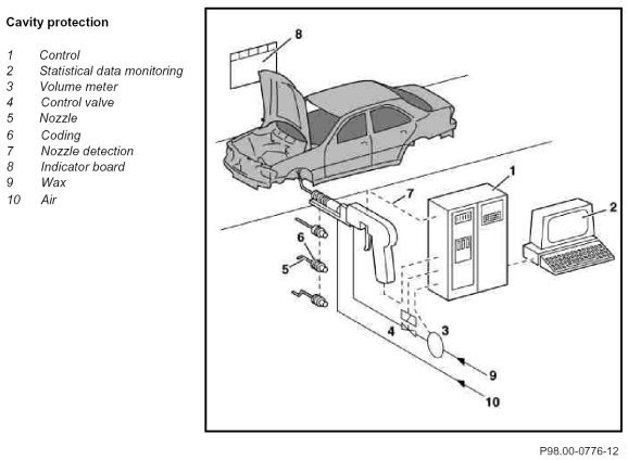 The cavity preservation is accomplished as required for the specific model with the aid of automatically controlled high pressure spraying equipment or fully automatic wax preservation systems.