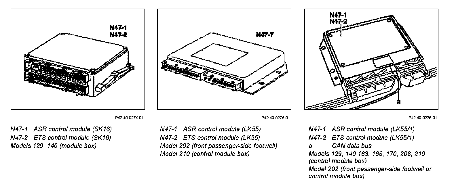 There are many versions of the ASR/ETS control module. They can be identified by the housing (e.g. SK16).