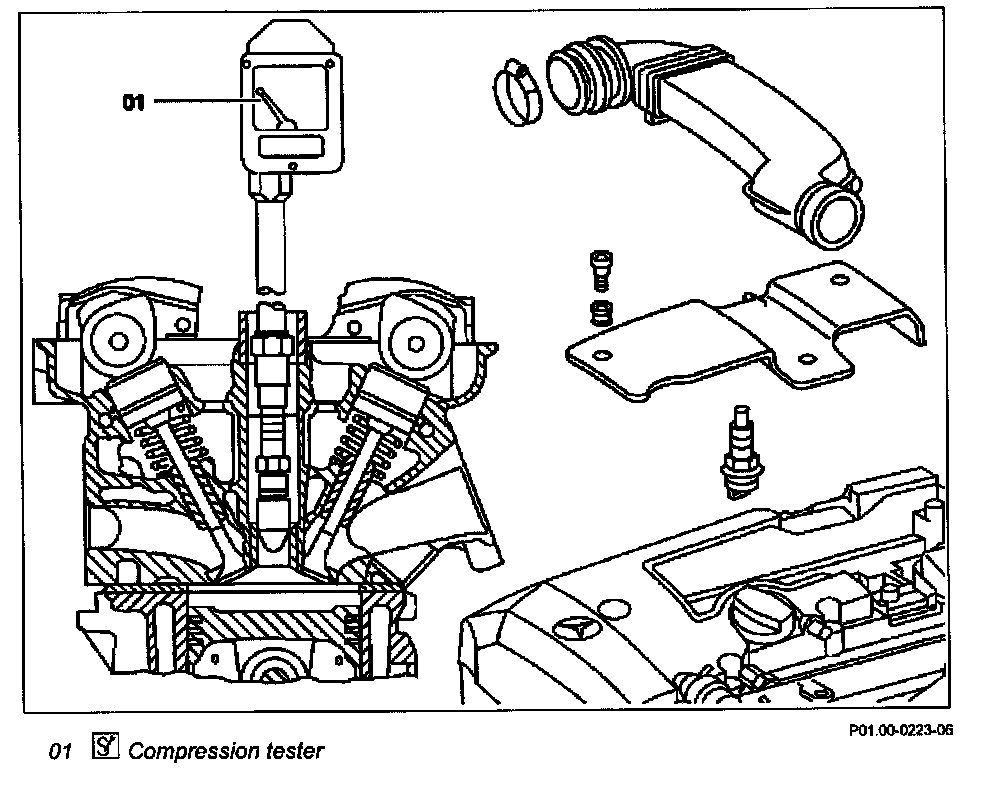 4 Insert compression tester (01) into spark plug bore