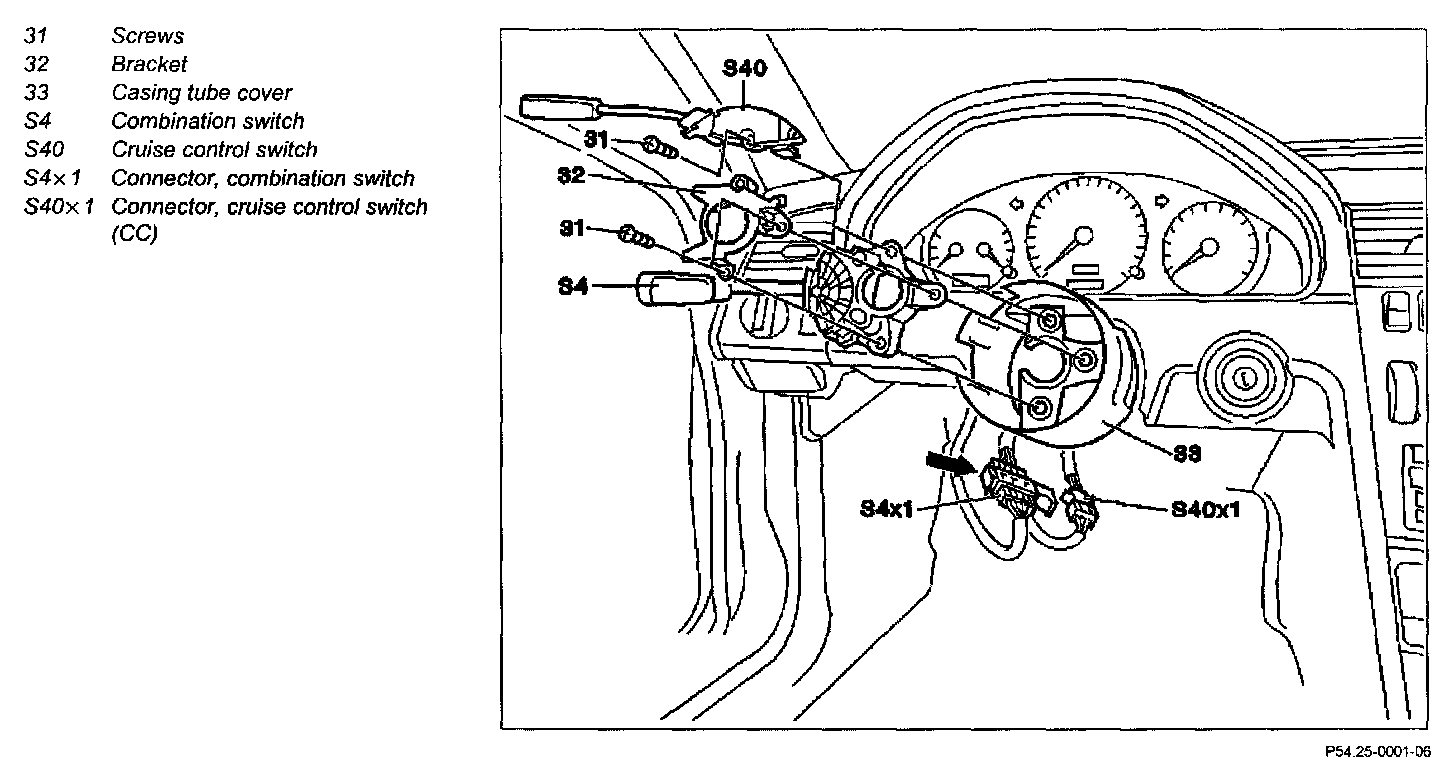 11.2 Take combination switch (S4) and cruise control switch (S40) out of casing tube cover