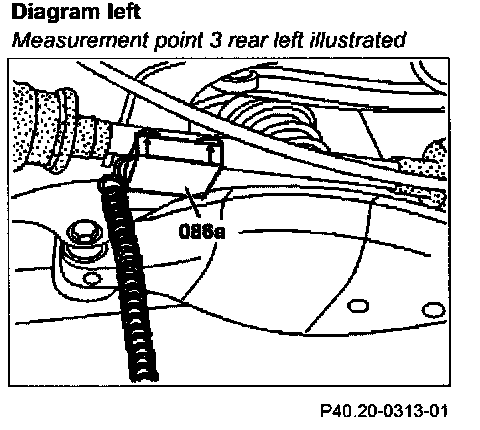 - Attach measurement sensor (086a) to left and right rear axle shaft (connecting cable pointing to center of vehicle) and store each measured value.