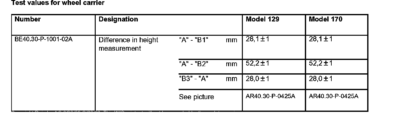 Test values for wheel carrier: