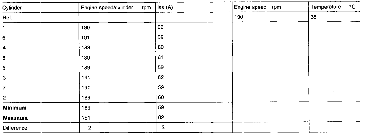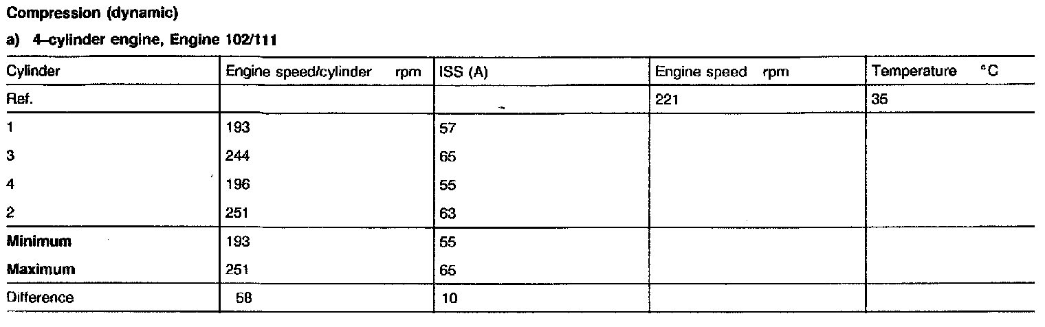 This will make the evaluation of the magnitude of the failure easier. The value listed under difference can be used to determine if a mechanical failure is present, for example: difference of ISS > 4A on 4-cylinder engines means that there is possibly a mechanical failure present.