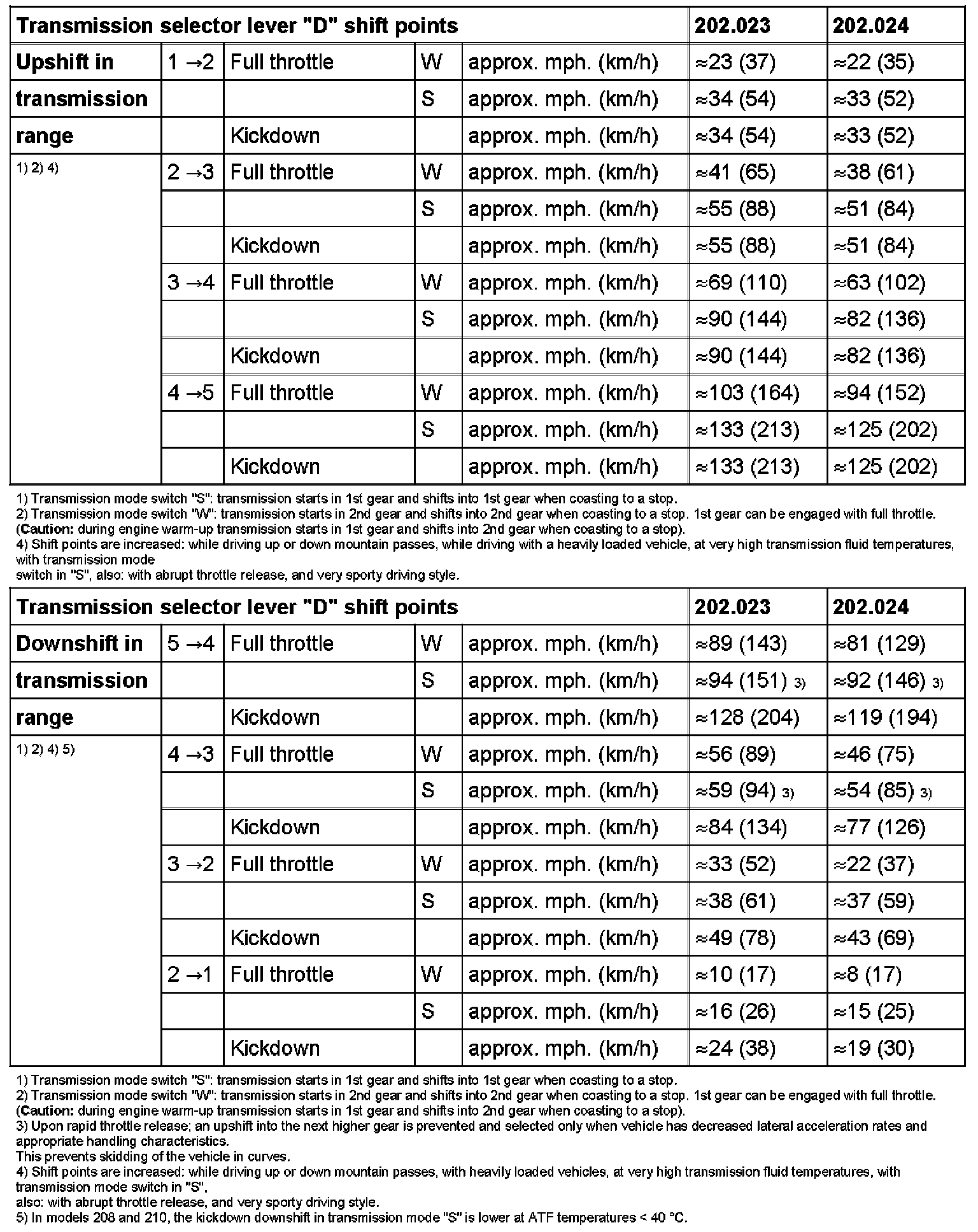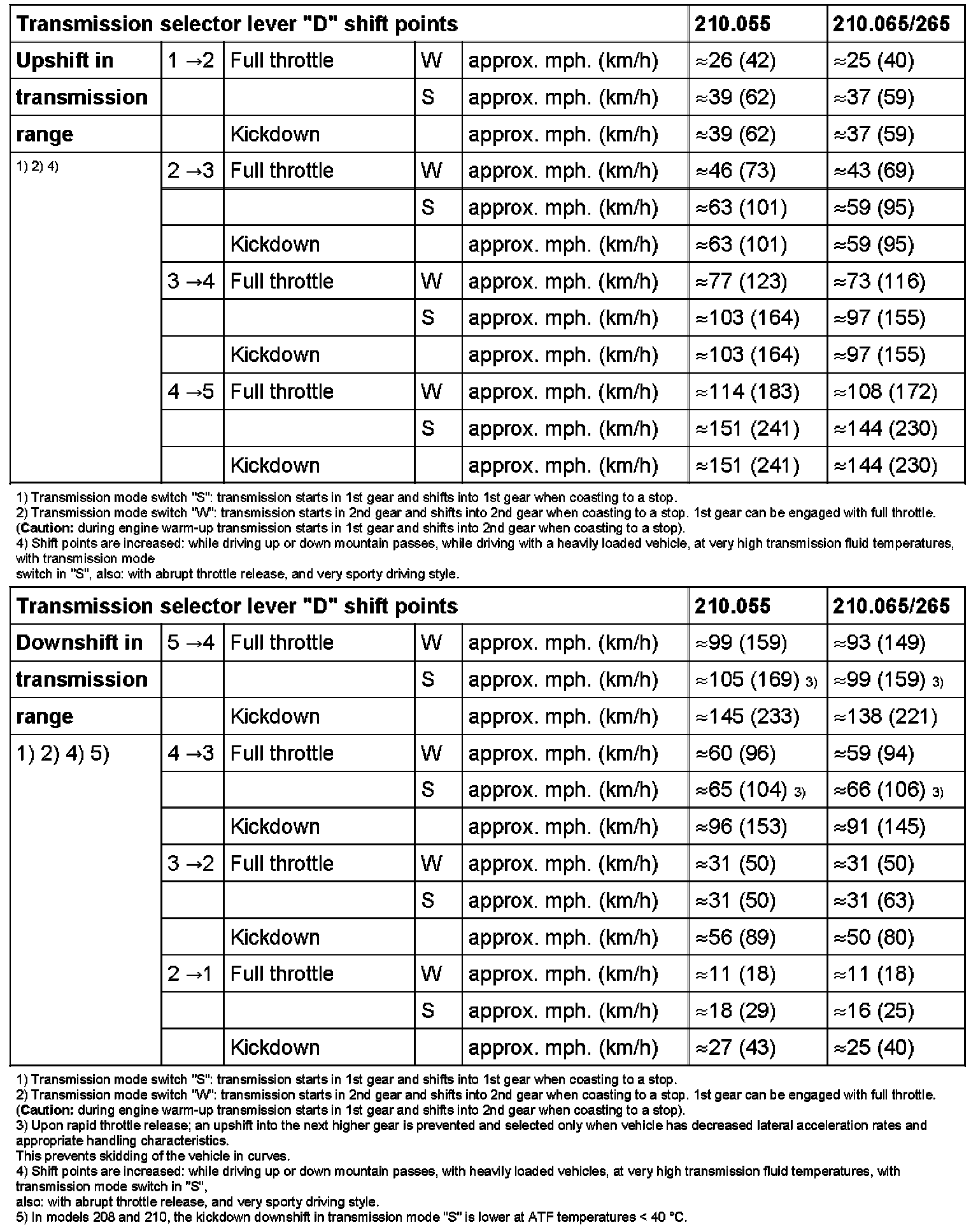 - Shift points are increased: While driving up or down mountain passes, with heavily loaded vehicles, at very high transmission fluid temperatures, with transmission mode switch in "S", also: with abrupt throttle release, and very sporty driving style.