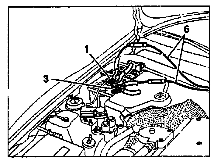 - Connect negative test cable (-) to negative pole (3) on battery.