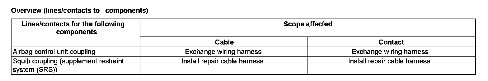 The repair area must be between 100 mm and 1000 mm behind the squib. Cables which have already been repaired are provided with a yellow marking. This is to be applied retroactively to repair lines without color marking