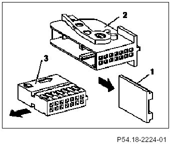 6 Remove connector housing (3) from cap (2) in direction of arrow.