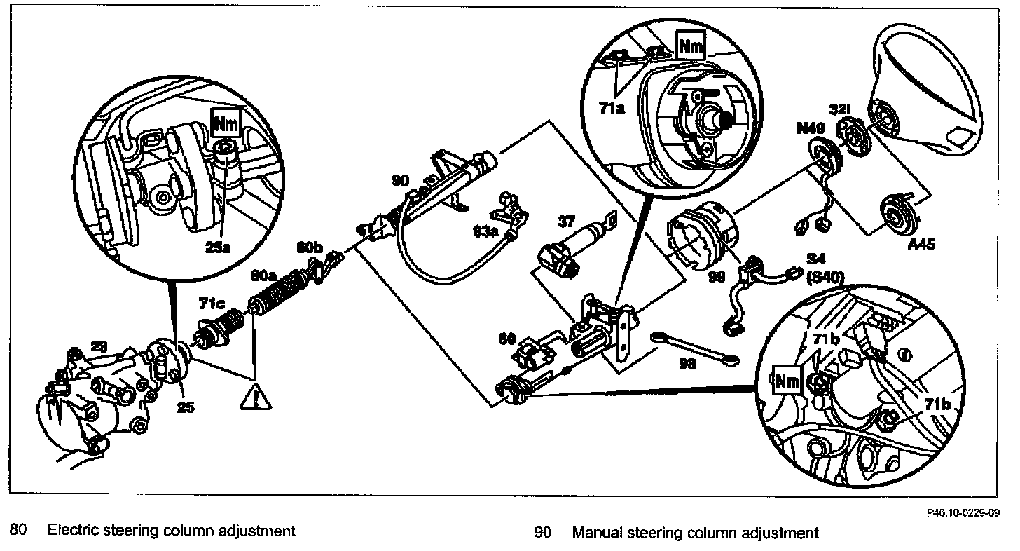 - Installation: Ensure the straight-ahead position of the jacket tube (triggering lugs must point towards the combination switch) and steering gear