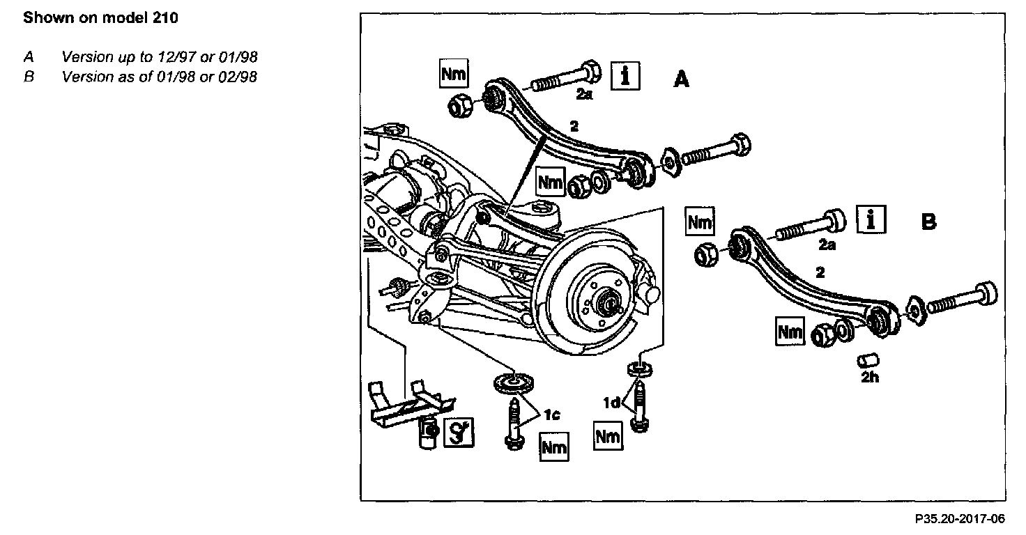 - Only model 210 removal: If the direction of installation of the bolt (2a) is from the front, the front and rear rear axle mount bolt (1c, 1d) is not detached.