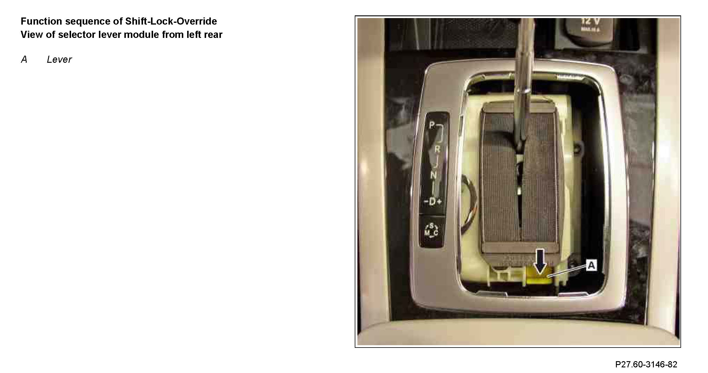 ^ Function sequence of Shift-Lock-Override (manual unlocking of selector lever position "P")