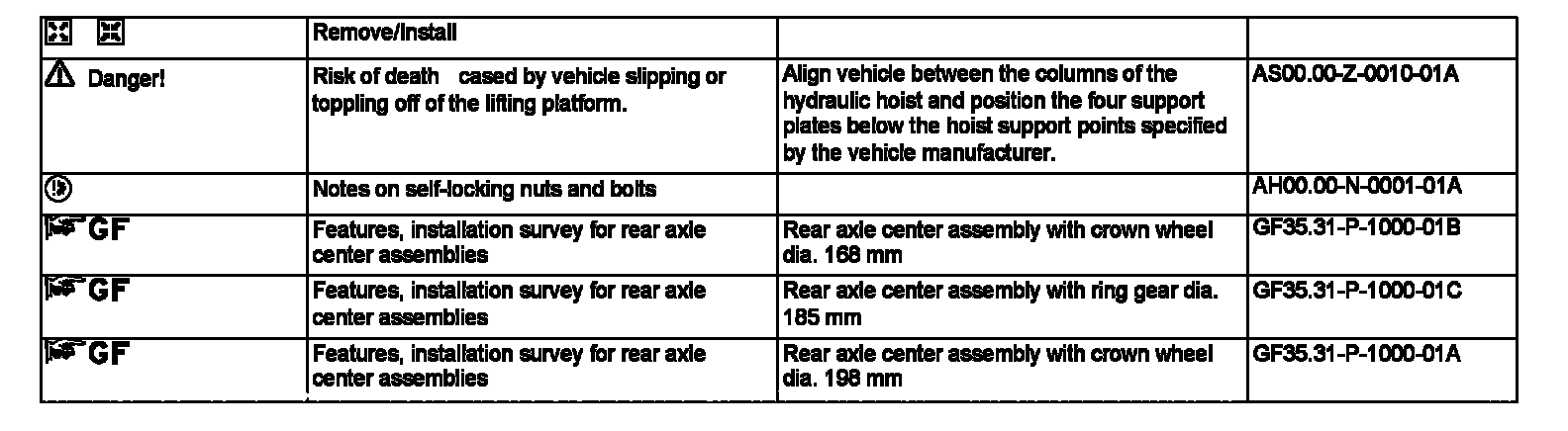 AR35.31-P-0520GG Remove/Install Rear Axle Center Assembly