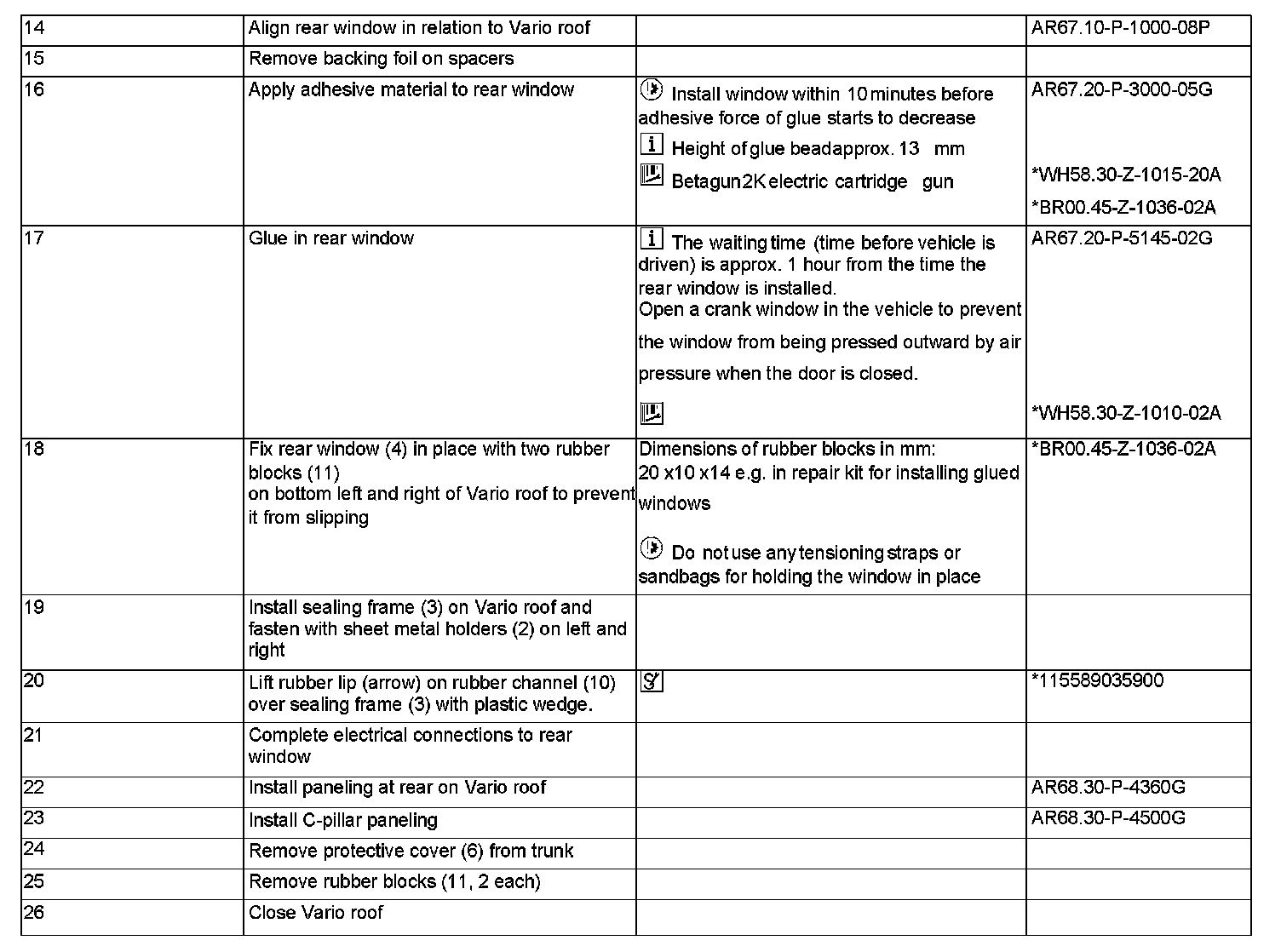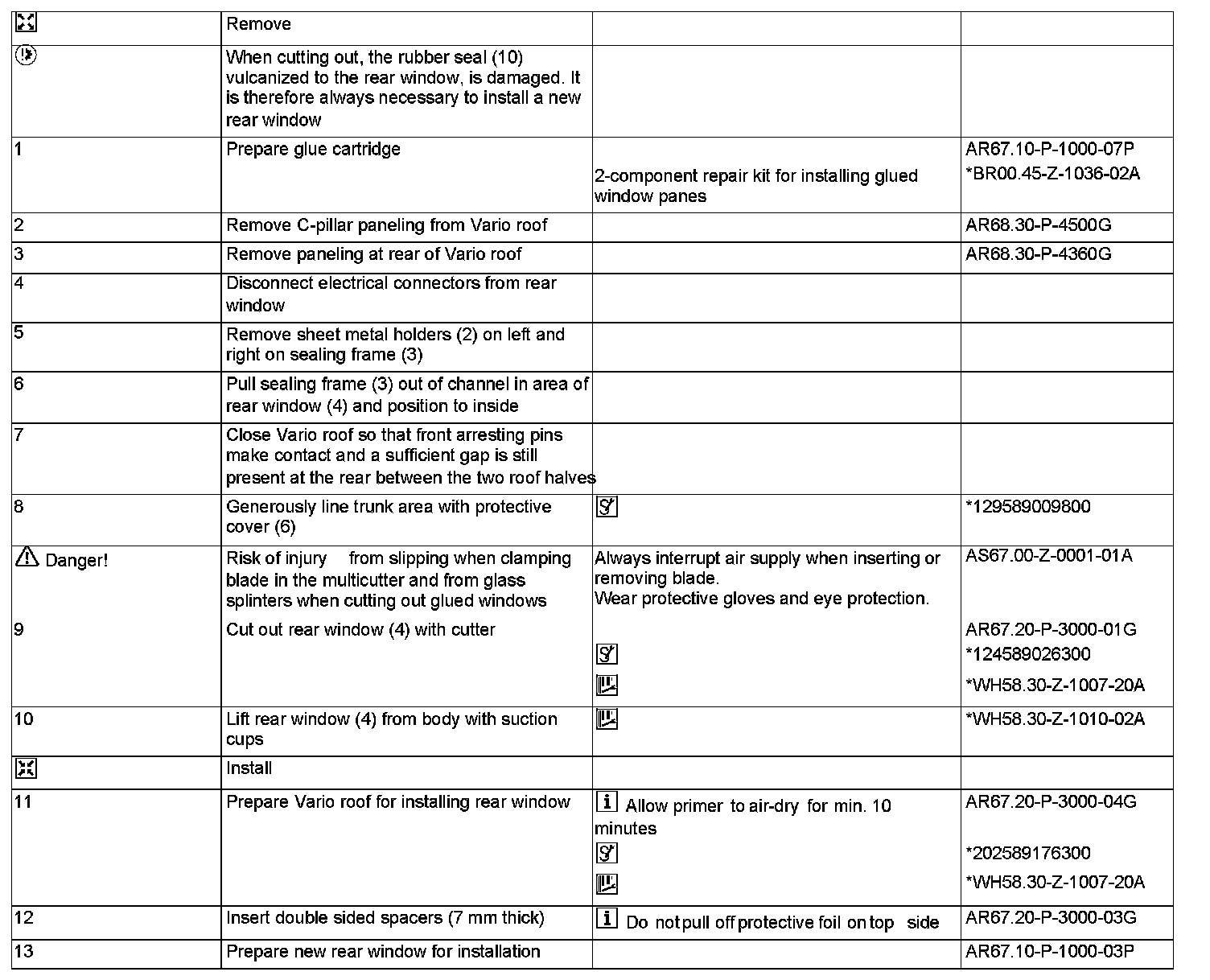 AR67.20-P-3000G Remove/Install Rear Window In Vario Roof