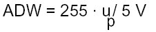 The voltage at point p reaches the input of the analog-to-digital converter a. The analog-to-digital converter (ADC) converts the analog voltage into a digital value between 0 and 255 (8-bit converter). This is necessary since the computer can only work with digital values. The computer compares these values with the threshold values stored in a memory chip (EEPROM) and then activates the corresponding indicator lamp(s) (A1e11) or (A1e13) accordingly. The digital value can be determined using the following formula: