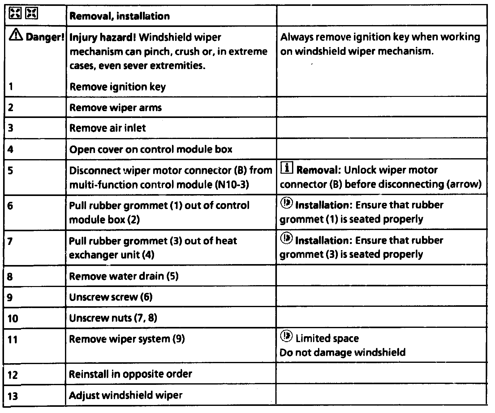 Removing and Installing Wiper System