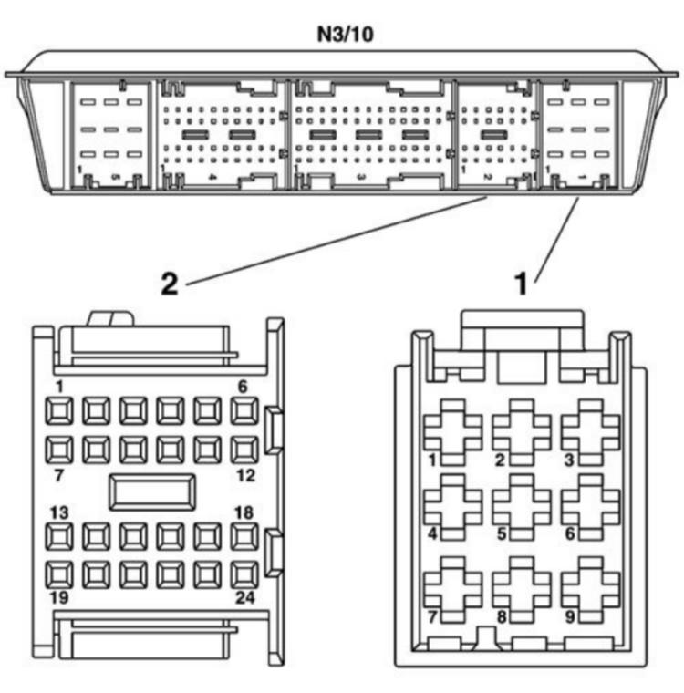 - Detach sockets 5 and 2 at component N3/10 (ME-SFI control module).