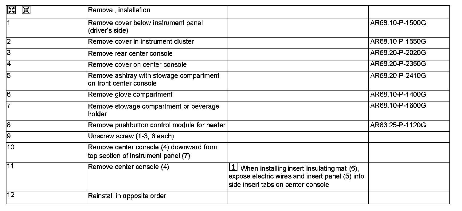 AR68.20-P-2010G Remove/Install Front Center Console