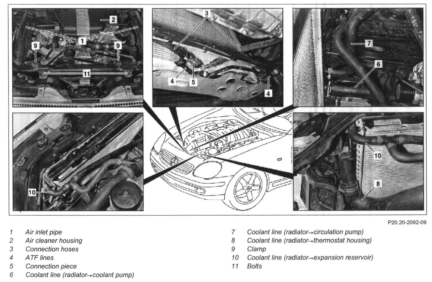 - That the retaining studs (13) of the radiator on bottom right and left are located in the rubber mounts (14).