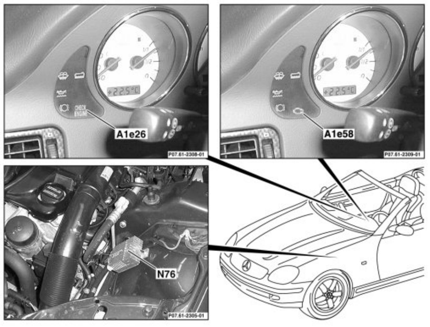 A1e58 Engine diagnosis malfunction indicator lamp, EURO3/4