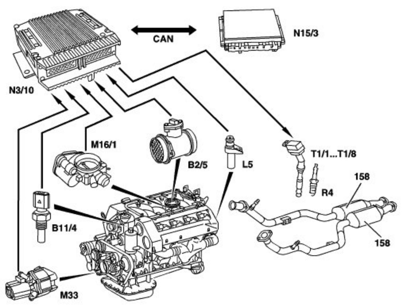 - Ignition system: In the idle speed and in line with coolant temperature, the ignition angle is retarded for e.g. approx. 20 seconds and the exhaust temperature thus increased.