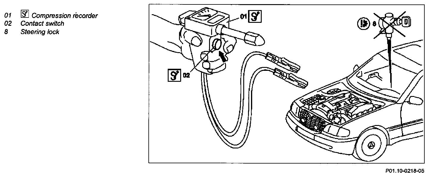 - Press contact switch (02) of the compression recorder (01) for this step.