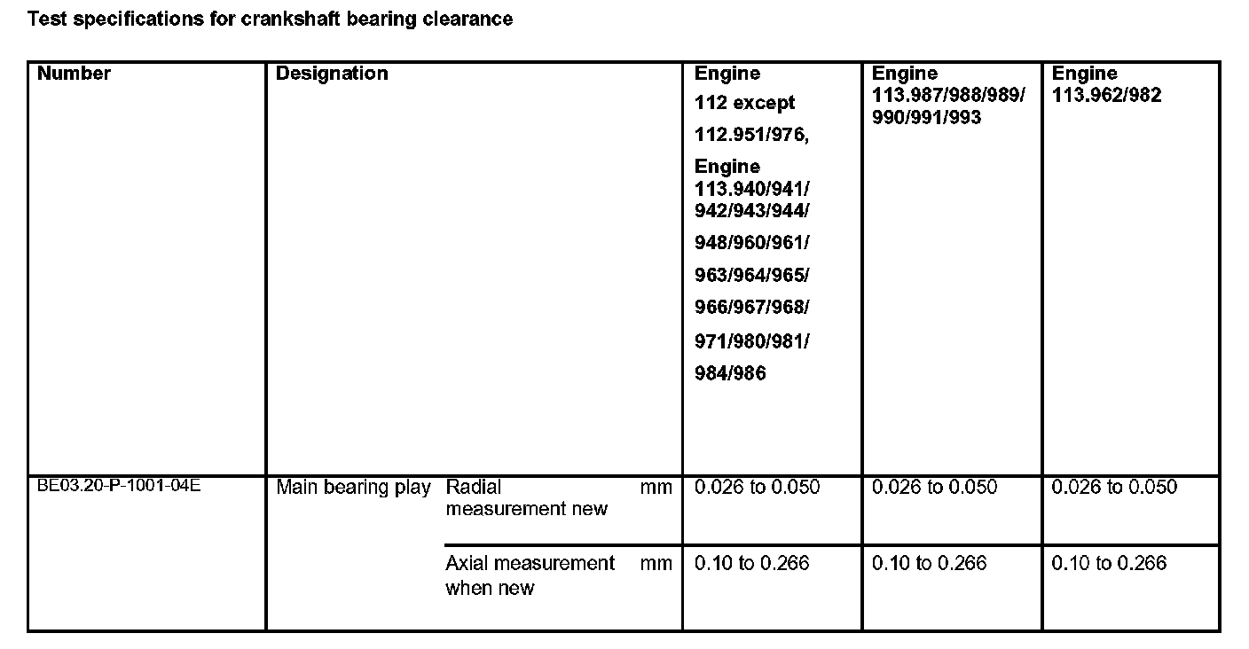 Assignment of crankshaft bearing shell bottom halves (bearing cap) M 112, 113: