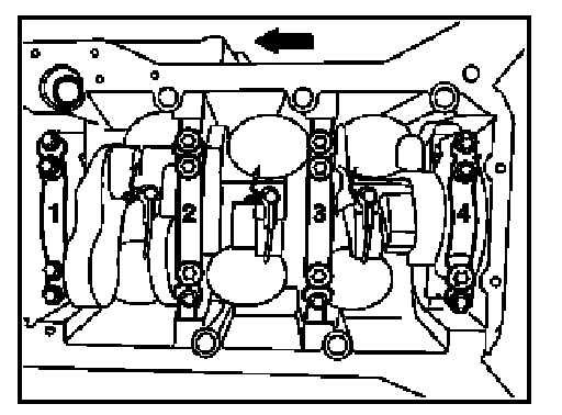 10 Tighten the bolts of the bearing caps as specified in the tightening procedure.