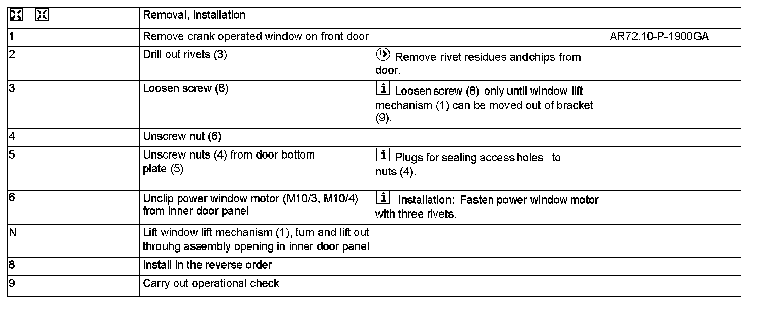 AR72.10-P-1800GG Remove/Install Window Lift Mechanism In Front Door