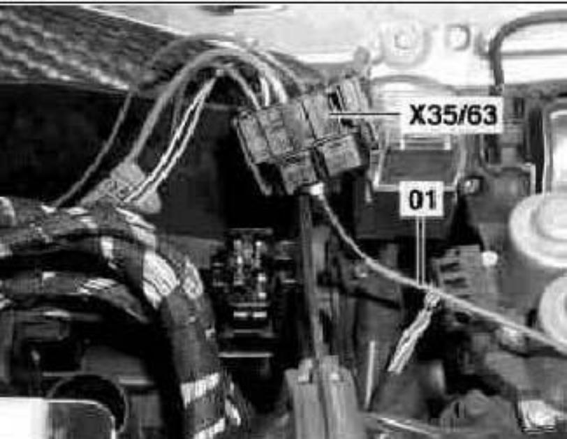 5. Connect adapter cable (01) to pin 6 of separation point of control module box engine (X35/ 63).