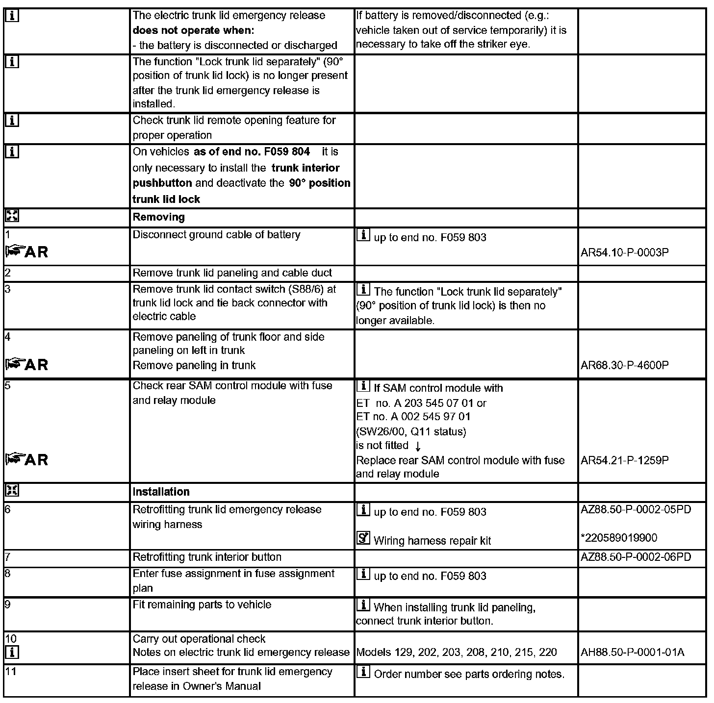 AZ88.50-P-0002PD Retrofitting Trunk Lid Emergency Release