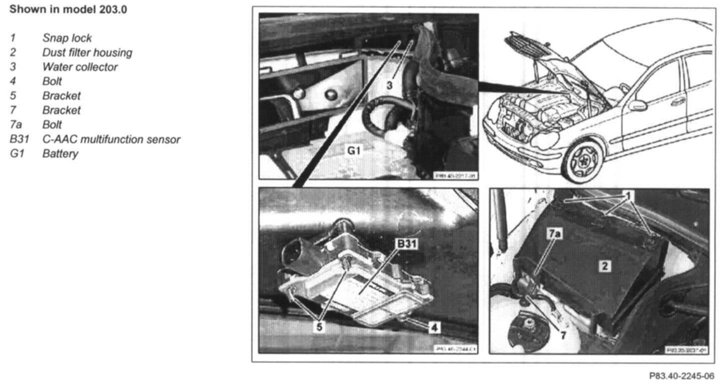 7 Remove C-AAC multifunction sensor (B31) from the water collector (3)