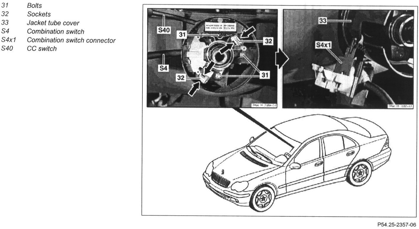 8 Remove combination switch (S4) from jacket tube cover (33)