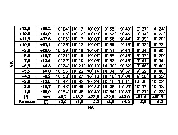 1 Obtain the caster value from the table taking into account the front axle and rear axle level value measured previously.