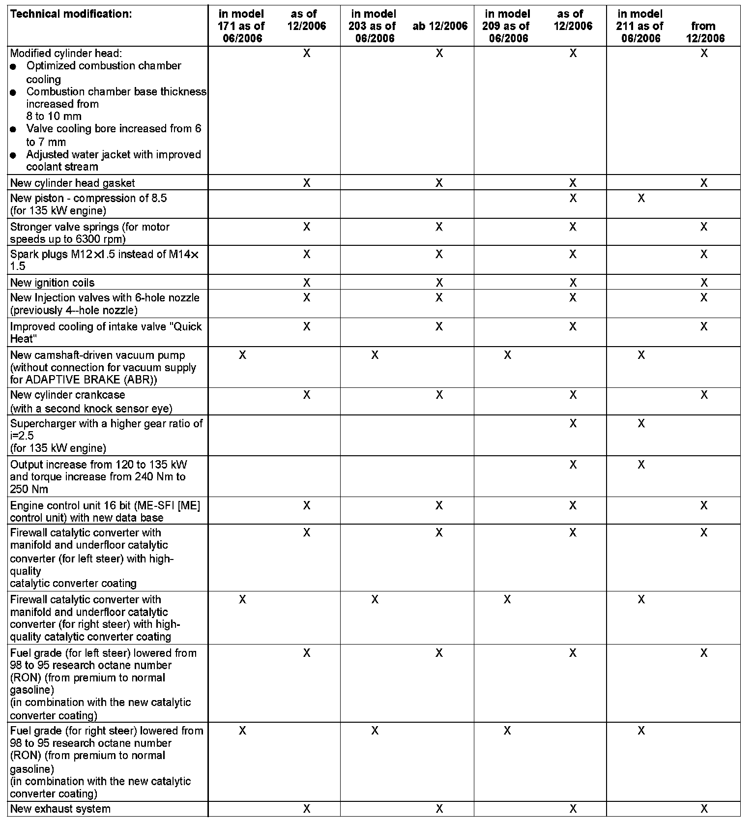 Engine 271 underwent model refinement in 2006. Technical modifications on the model refined engines 271 REPO (repositioning) were introduced from 06/06 in two steps.