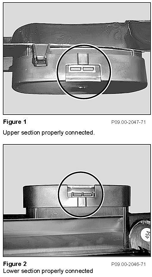 1. Ensure cover cap is properly connected (circles, Figure 1, 2) to air intake duct. If not properly connected, proceed to step 2: