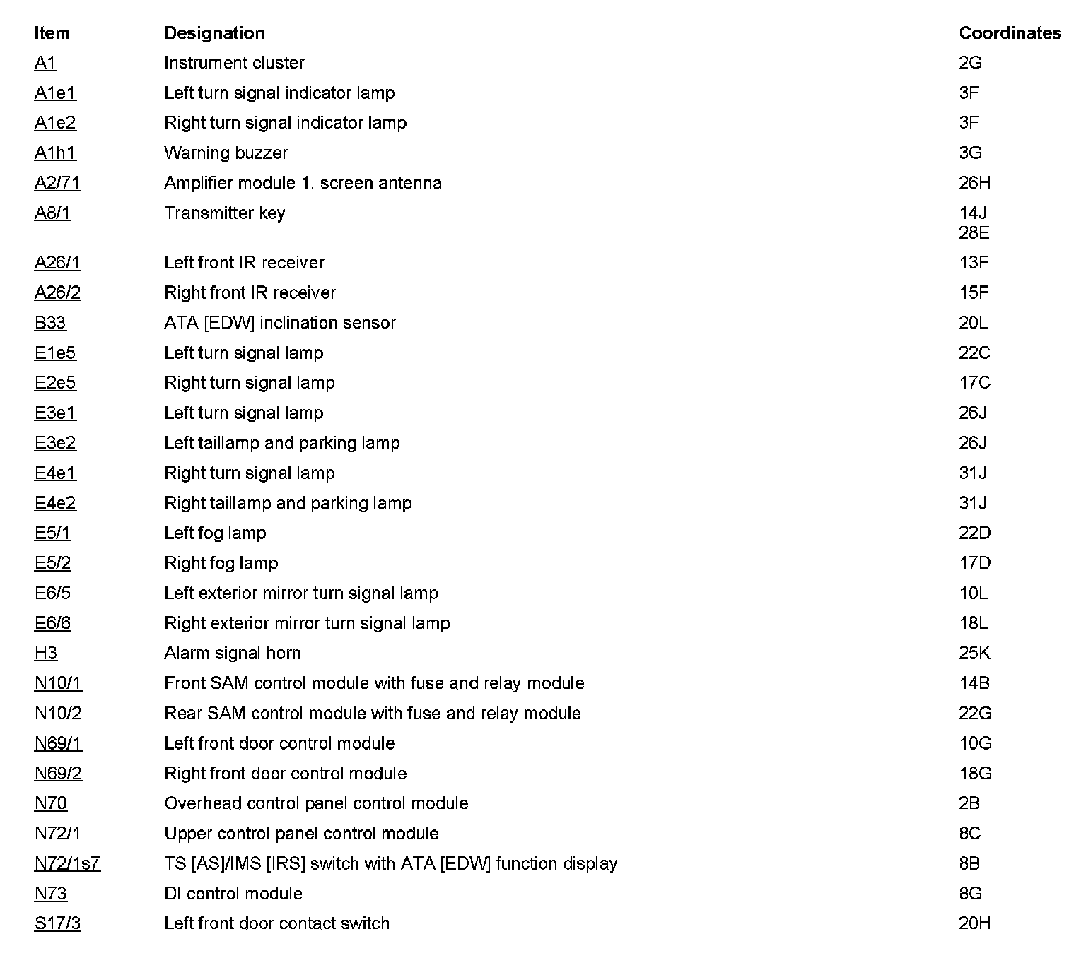 Component Description/Coordinates, A1 To S17/3: