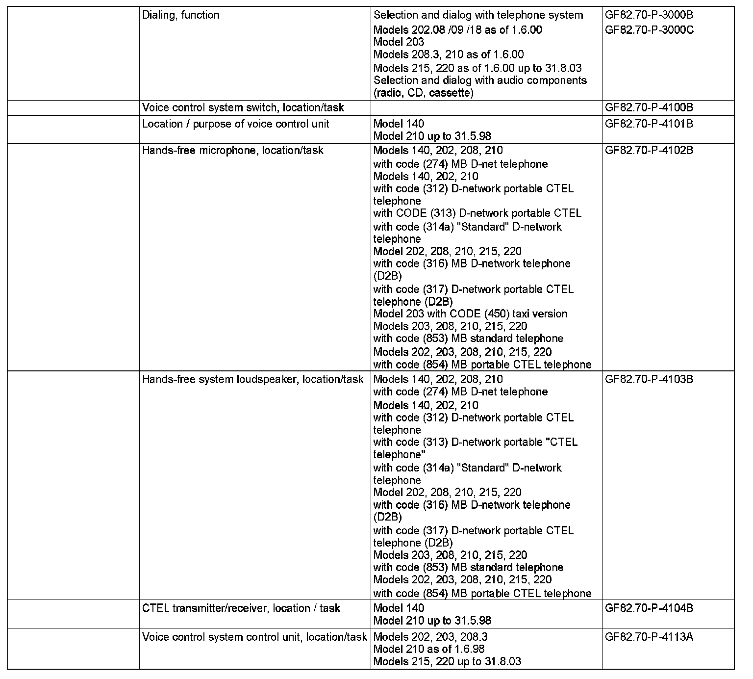 MODELS 140, 202,203 up to 23.4.04,208.3, 210,215, 220 up to 31.8.03