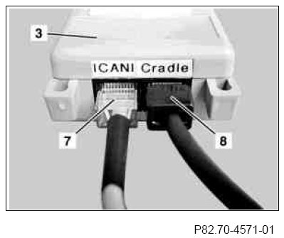 3 Route connection coupling (8) from the telephone console to the interface box for the hands-free system (3) and connect to the interface box of the hands-free system (3).