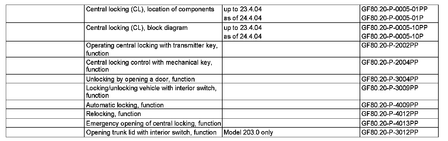 GF80.20-P-0005PP Central Locking (CL [ZV]), Function