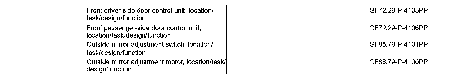 A potentiometer for position recognition is located on the shaft of the mirror up/down adjustment motor (M21/1m1), mirror up/down adjustment motor (M21/2m1), mirror in/out adjustment motor (M21/1m2) and mirror in/out adjustment motor (M21/2m2), in the left electrically adjustable and heated outside mirror (M21/1) or in the right electrically adjustable and heated outside mirror (M21/2).