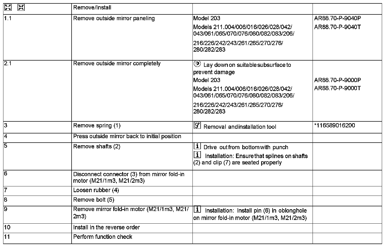 AR88.70-P-9070P Remove/Install Folding Drive For Outside Mirrors