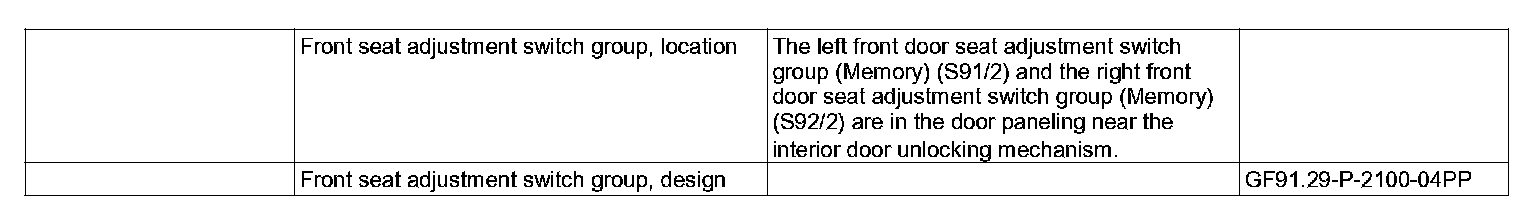 GF91.29-P-2112PP Front Seat Adjustment Switch Group, Location/design