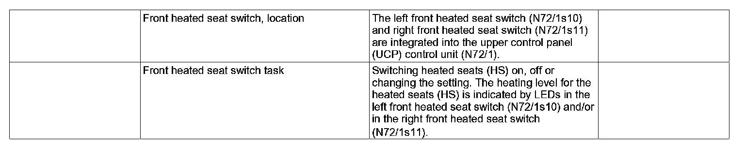 GF91.30-P-3000PQ Front Heated Seat Switch, Location/task