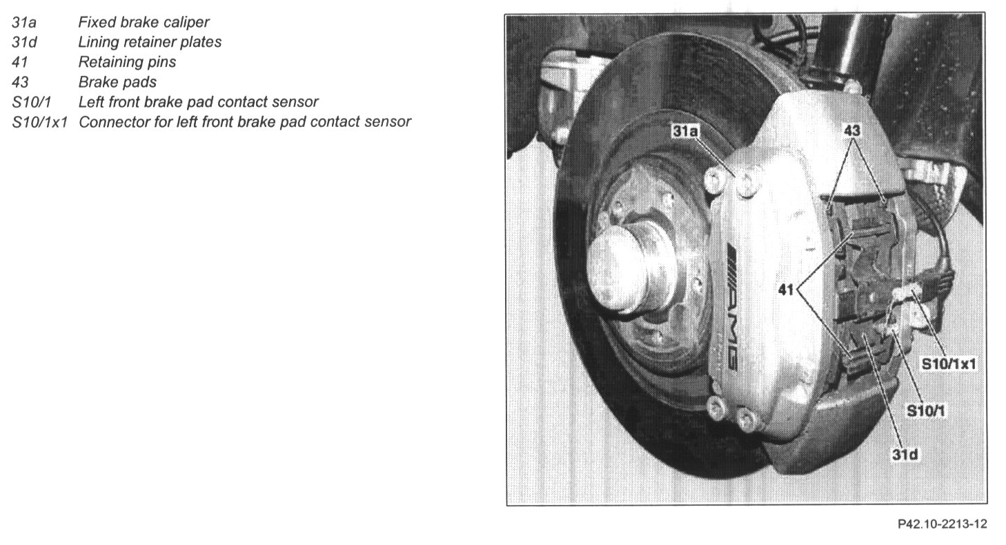 - Only brake pads approved by Mercedes-Benz in pairs may be fitted.