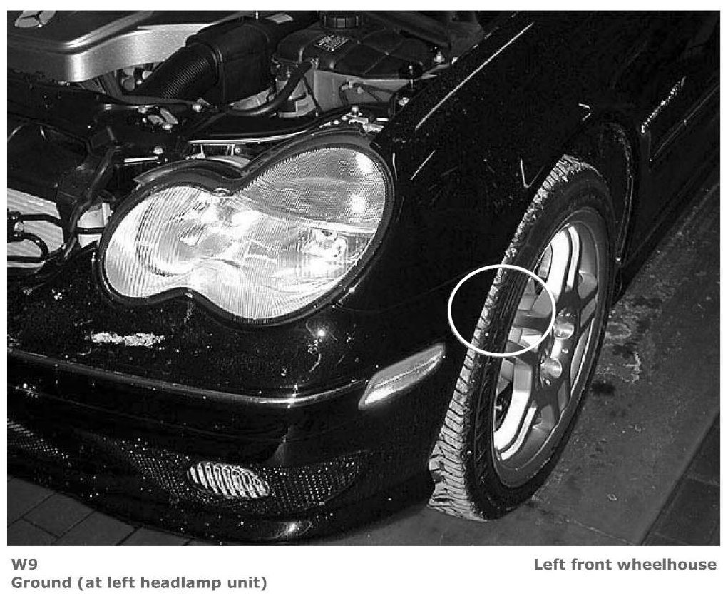 Ground (at Left Headlamp Unit) (View 1):