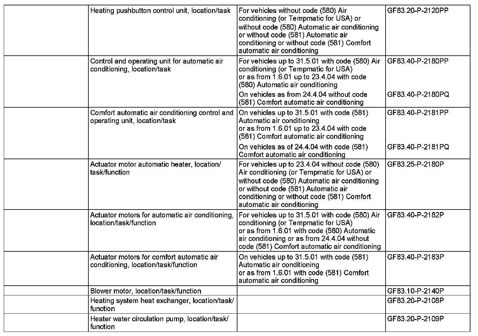 - with CODE (581) Automatic air conditioning