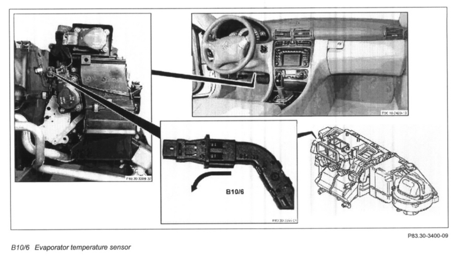 3 Disconnect connector from evaporator temperature sensor (B10/6)
