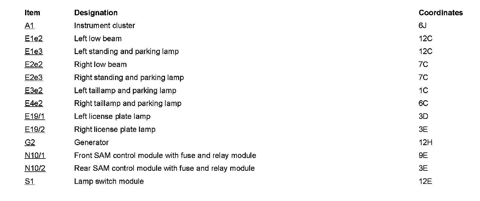 Function Diagram For Exterior Lights PE82.10-U-2051FC